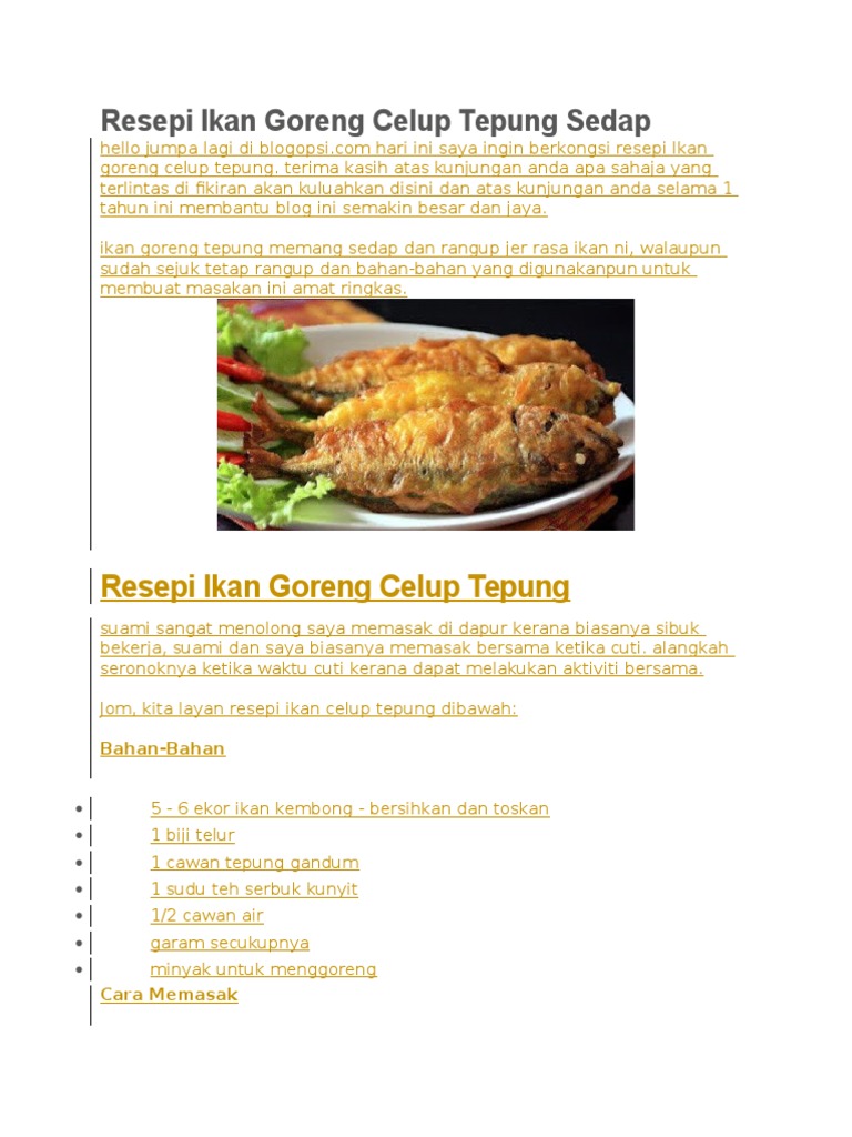 Resepi Ikan Goreng Celup Tepung Sedap Pdf
