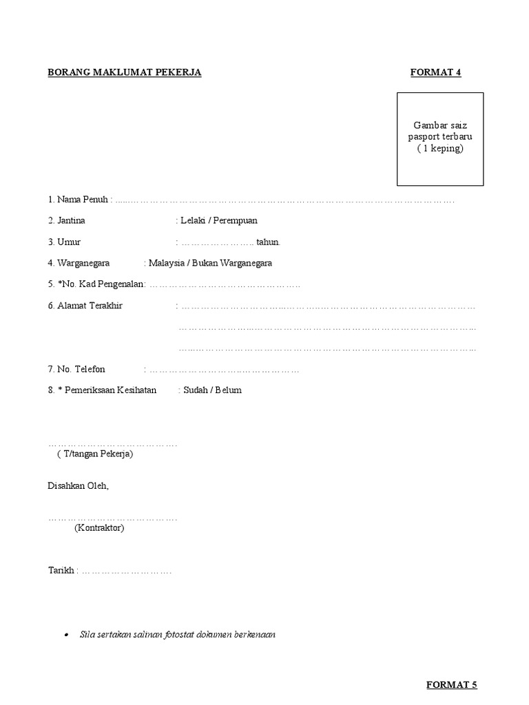 BORANG MAKLUMAT PEKERJA Gambar Saiz Passport Terbaharu 1.